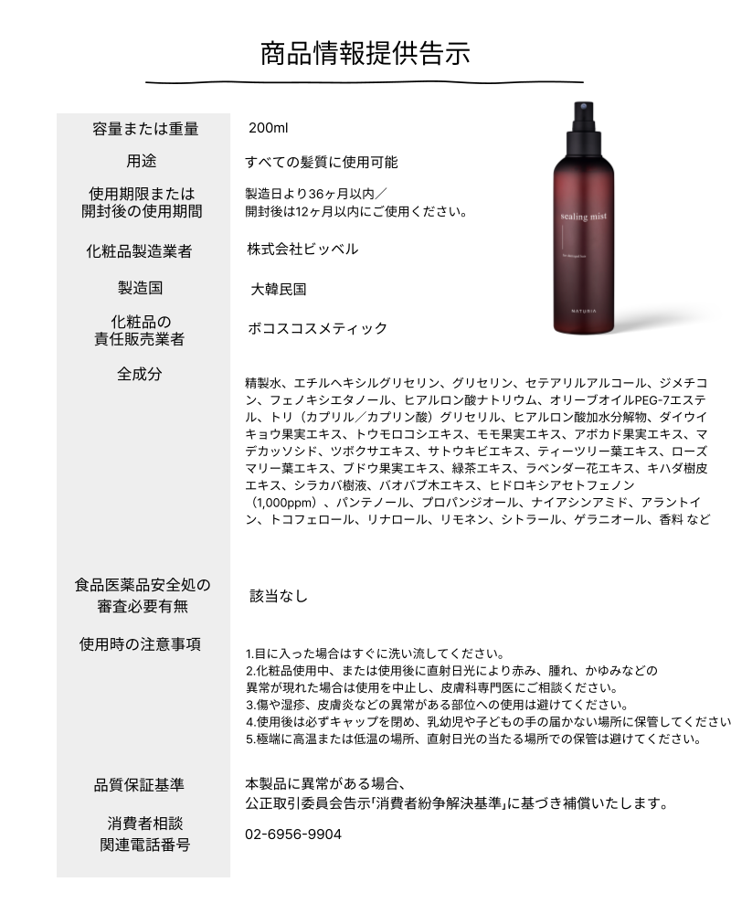 容量:  ケラチンシャンプー 500ml、ノーリッシングマスク 300ml、ナインオイル 100ml、シーリングミスト 200ml