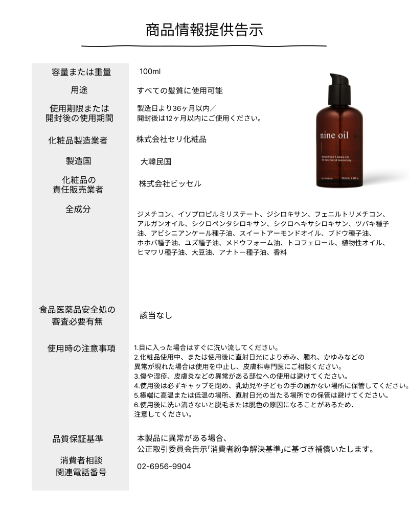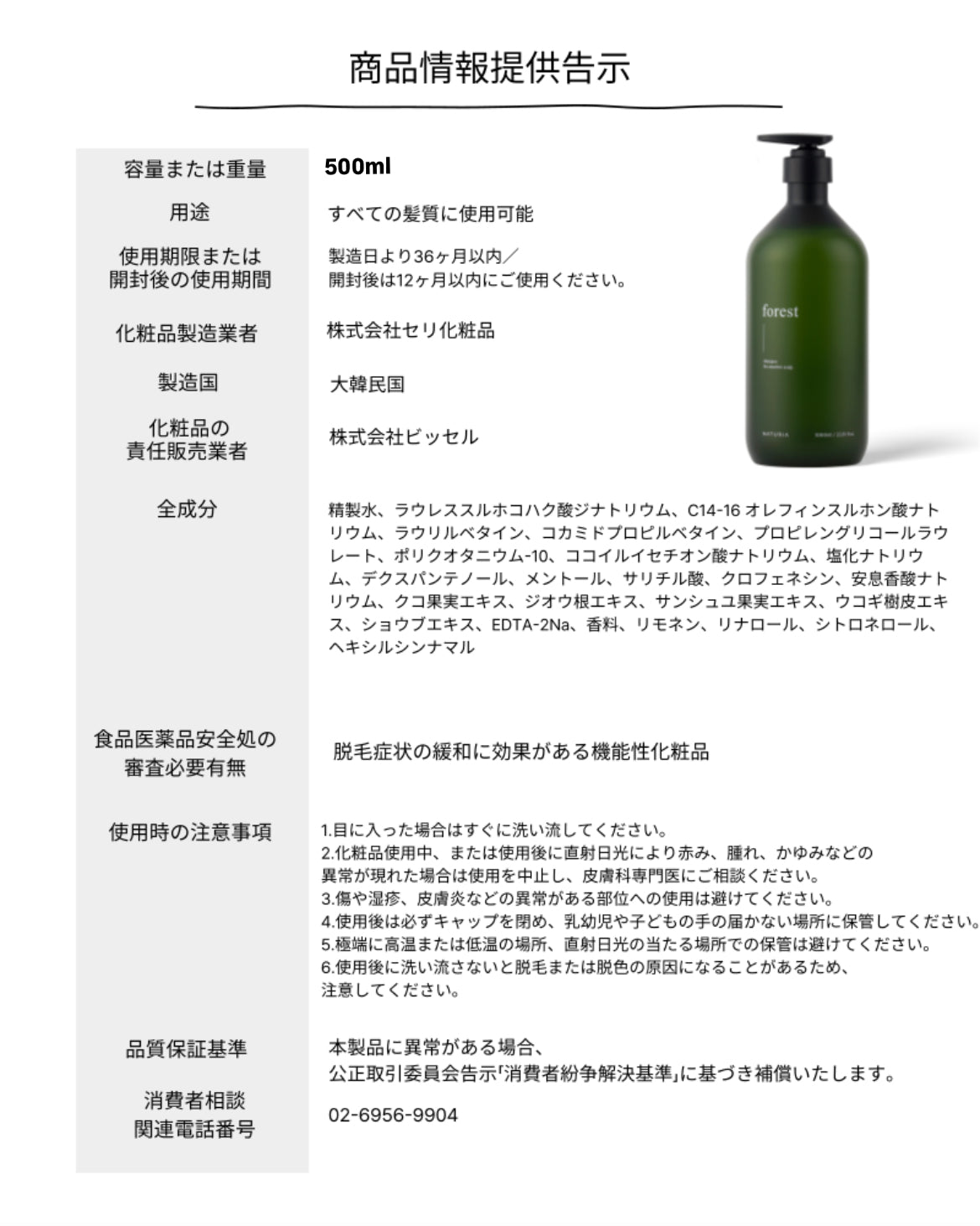 容量: フォレストシャンプー 500ml、ノーリッシングマスク 300ml、フォレストトニック 150ml、ナインオイル 100ml