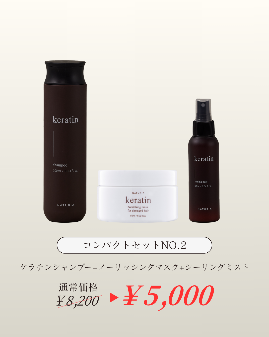 NATURIA コンパクトセットNO. 2(ケラチンシャンプー、ノーリッシングマスク、シーリングミスト)です。
