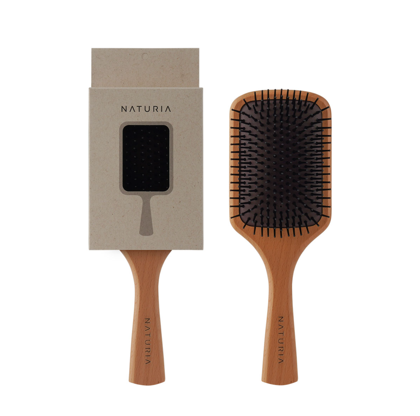 NATURIAウドゥンパドルブラシは、心地よい使用感で頭皮を優しくほぐすケアブラシです。