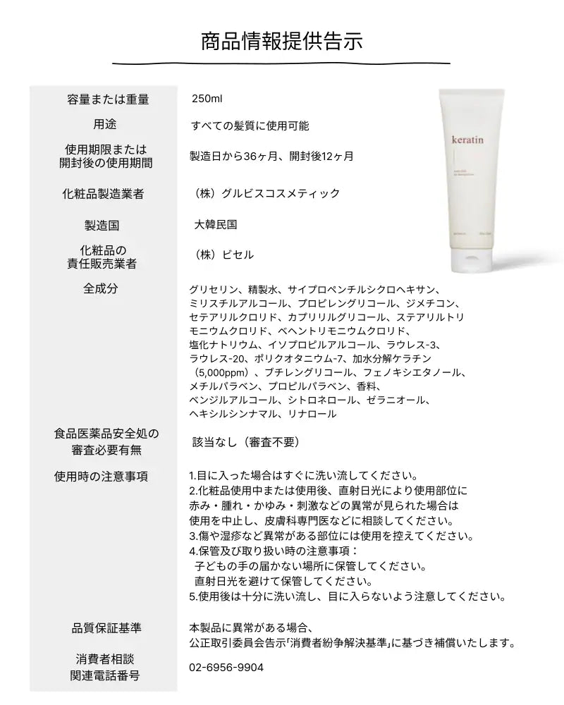 【Keratinライン】ケラチンウォーターパック 250ml(コンパクトサイズ 120ml)